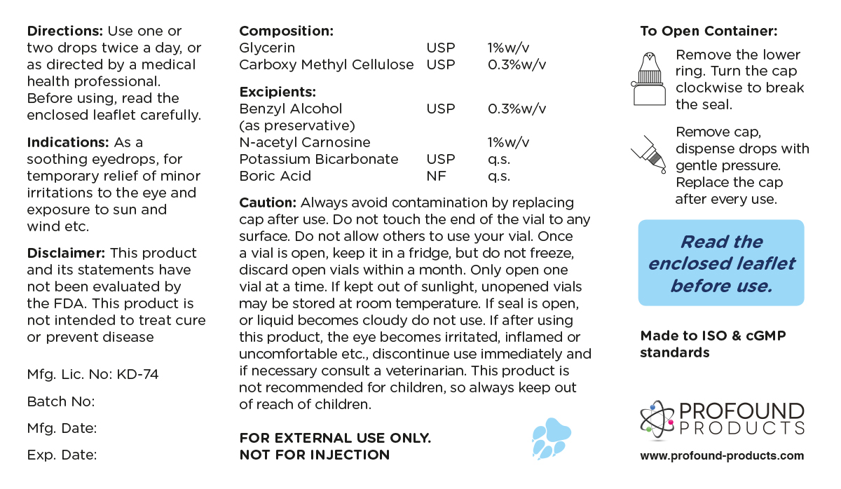 Place 1 or 2 drops into the eye 1 or 2 times daily. Do not exceed 4-drops an eye daily- unless directed by a veterinarian.