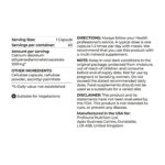 Serving Size: 1 capsule, Servings per container: 60